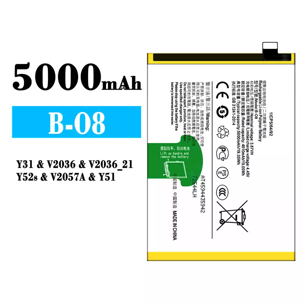 Batteria B-O8 per VIVO Y31/Y52s/Y51/V2036/V2036_21/V2057A