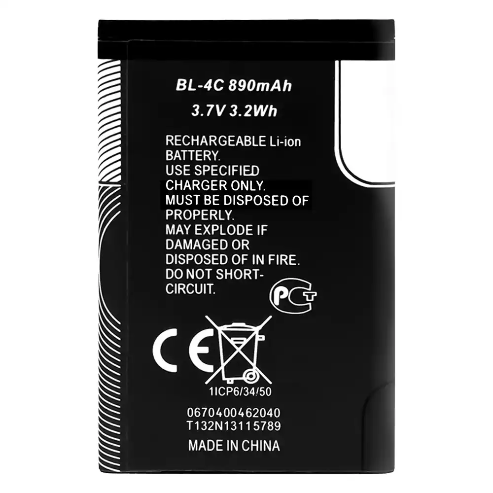 Batteria BL-4C per Nokia 6260 / 6300 / 6131 / 3500c / C2-05 / 6700s / 7610 / 6101 / 6125 / 5100 /6170 / 6100 / 6102 / 7270 / 6103 / 7200 / X2-00 / 6133 / 6136 / 6301 /6300i / 7205 cdma