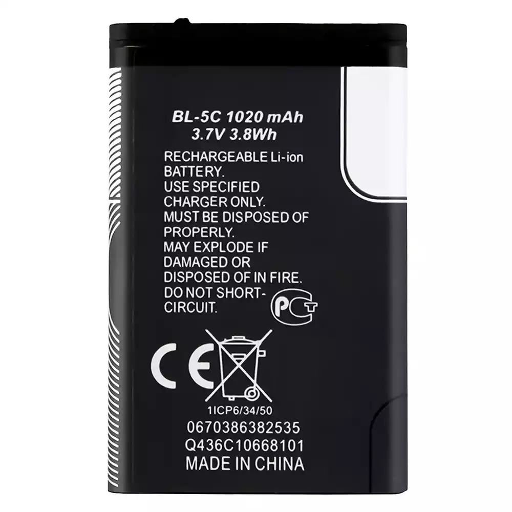 Batteria BL-5C per Nokia Nokia 1101 / 1100 / 1110 / 1110i / 1112 / 1200 / 1208 / 1280 / 1600 / 1650 / 2310 / 2600 / 2700 / 3100 / 3110 / 3120 / 5130 / 6030 / 6230 / 6230i / E50 / E60 / N70 / N71 / N72