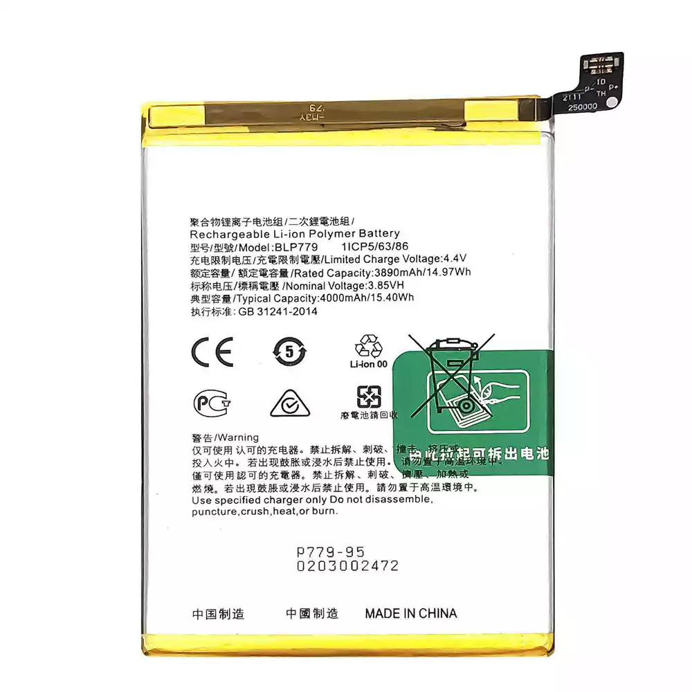 Batteria BLP779 per OPPO A92S / A93 / F17 Pro / Reno 4Z 5G / Reno 4 Lite / Reno 4F