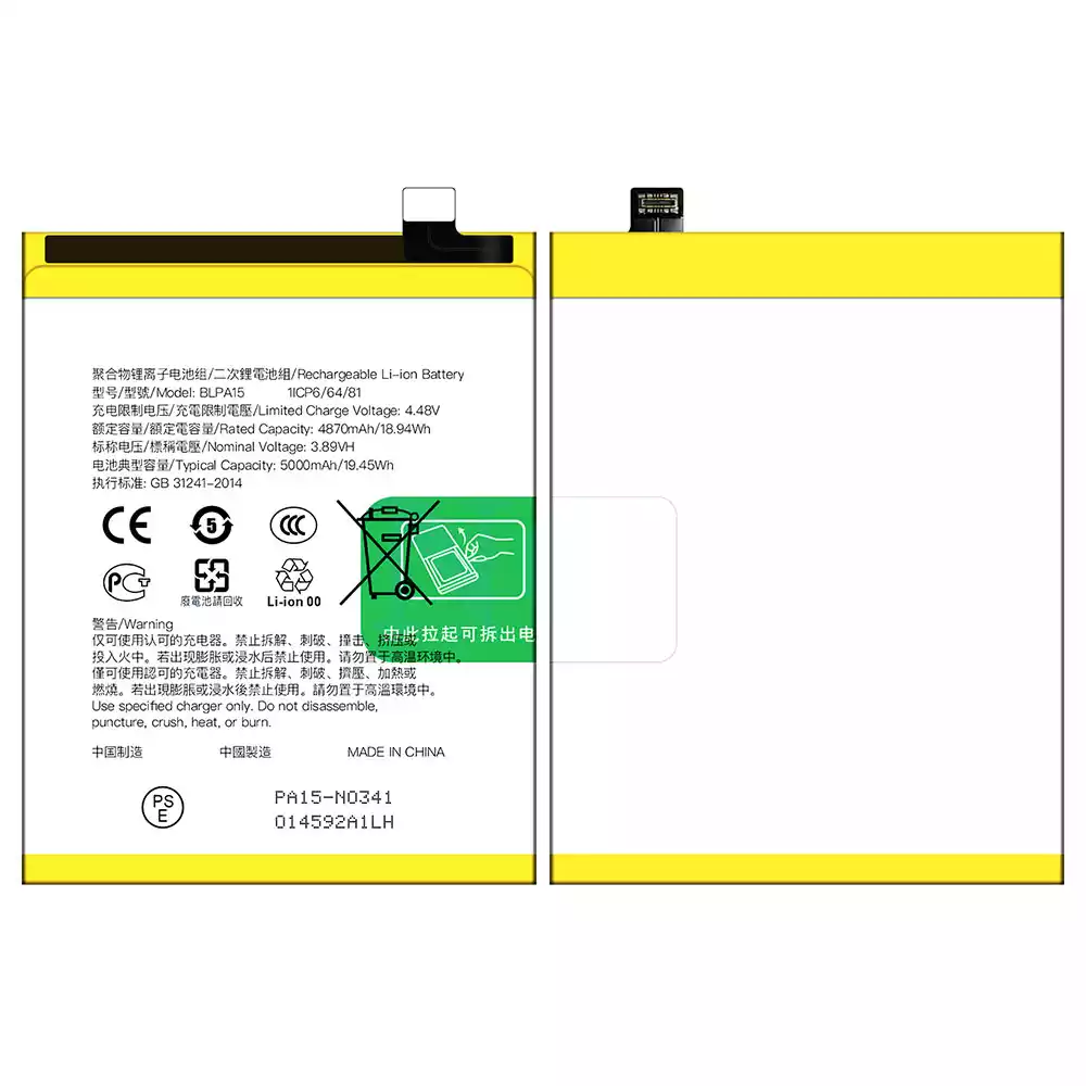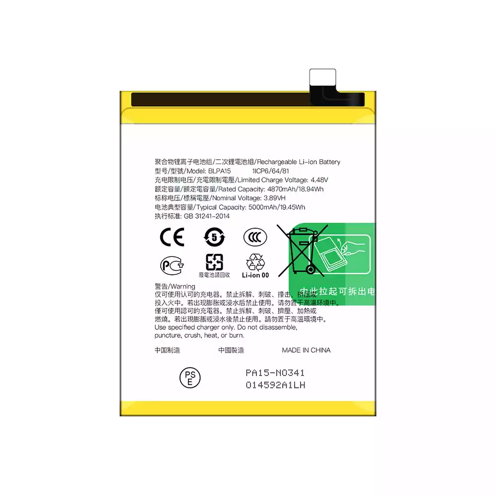 Batteria BLPA15 per OPPO Realme 11 5G / Realme 11Pro 4G 5G / Reno 11 5G / Reno 11 Global version