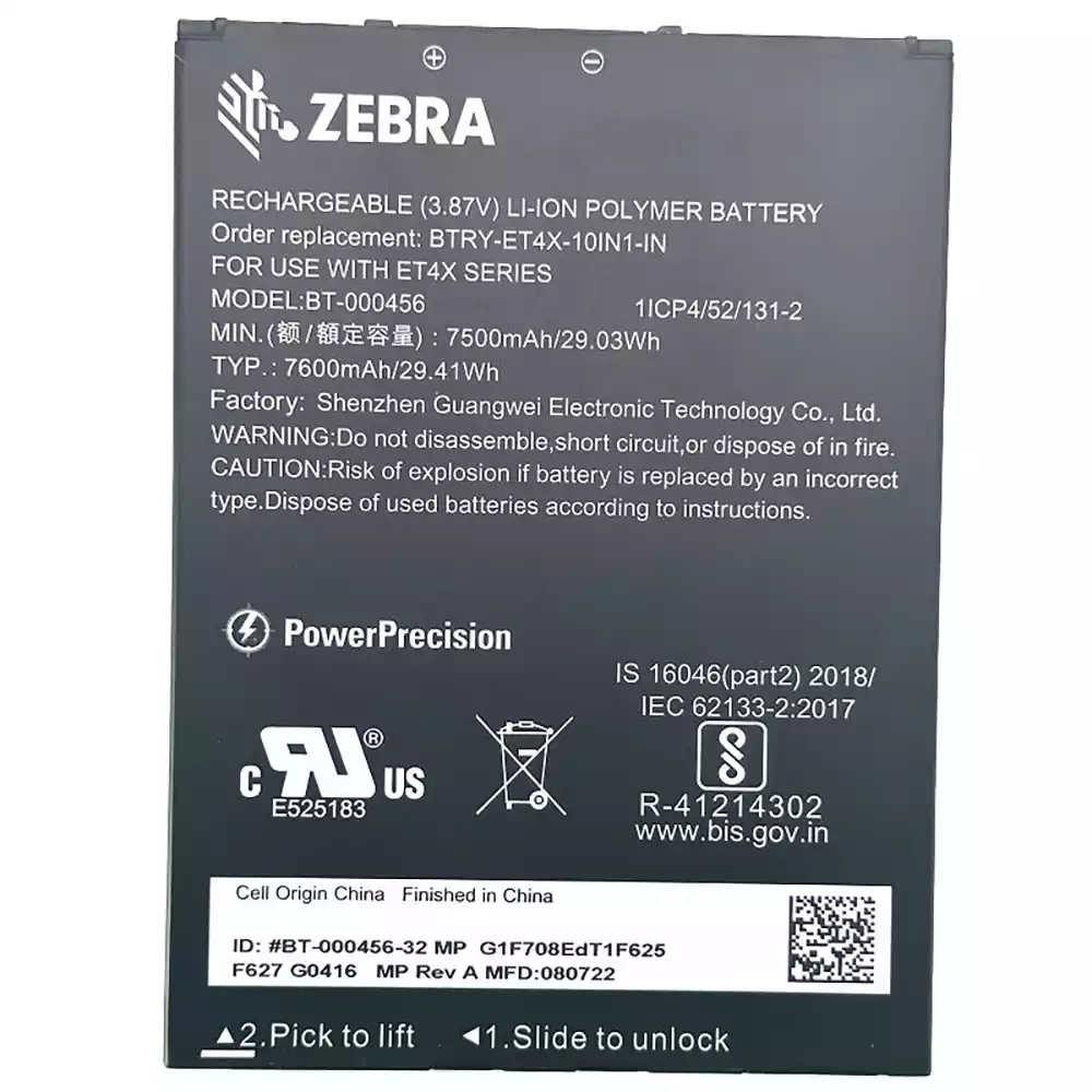 Batteria per ZEBRA BTRY-ET4X-10IN1-IN BT-000456
